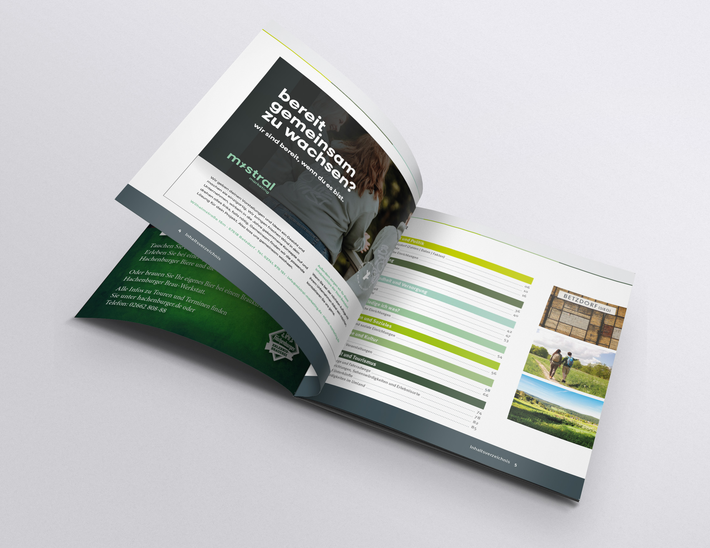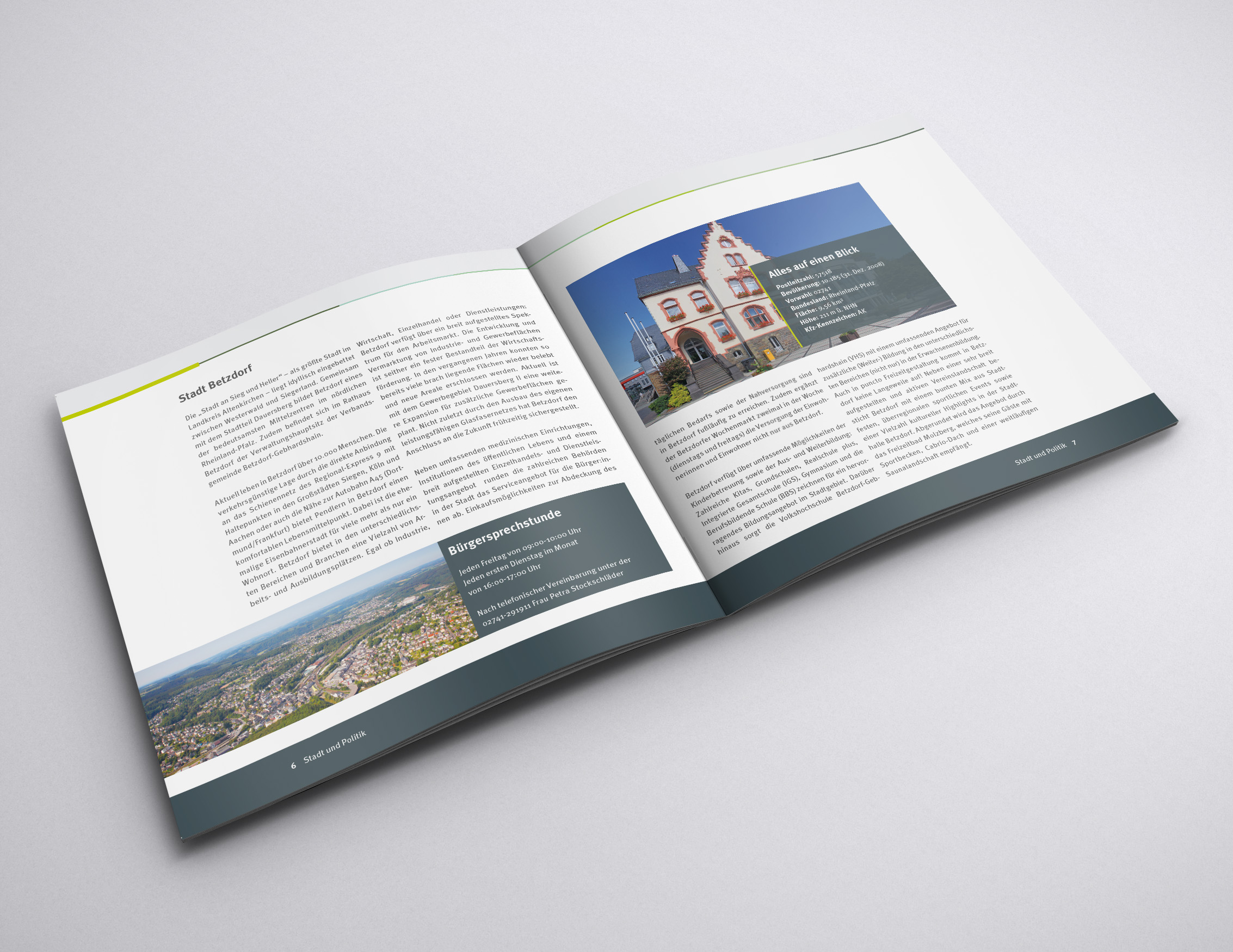 Unter den Titeln „Gut leben an Heller und Sieg“ und „Endlich angekommen!" präsentieren sich die neuen Imagebroschüren der Städte Betzdorf und Kirchen in einem frischen, modernen Layout. Sie bieten einen umfassenden Überblick über alle Einrichtungen, Vereine, Ärzte und Veranstaltungen, die das Leben in den Städten bereichern. Mit klar strukturierten Inhalten informieren die Broschüren über alles Wissenswerte und laden die Leser ein, die Vorzüge und Angebote der beiden Städte an der Sieg zu entdecken.